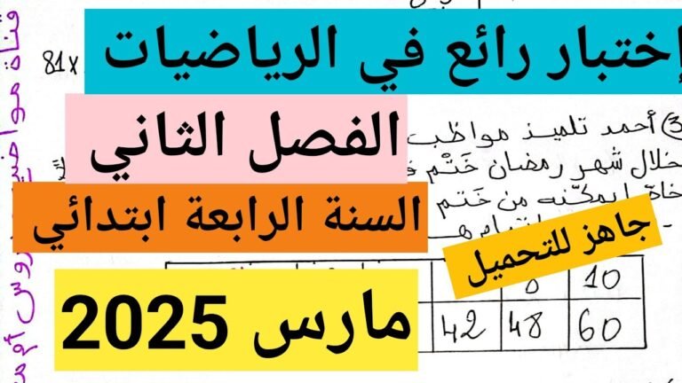 pow إختبار الفصل الثاني في الرياضيات السنة الرابعة ابتدائي للامانة منقول💗 مواضيع ودروس أم محمد 2 💗 7 أشهر ago Views 20 0