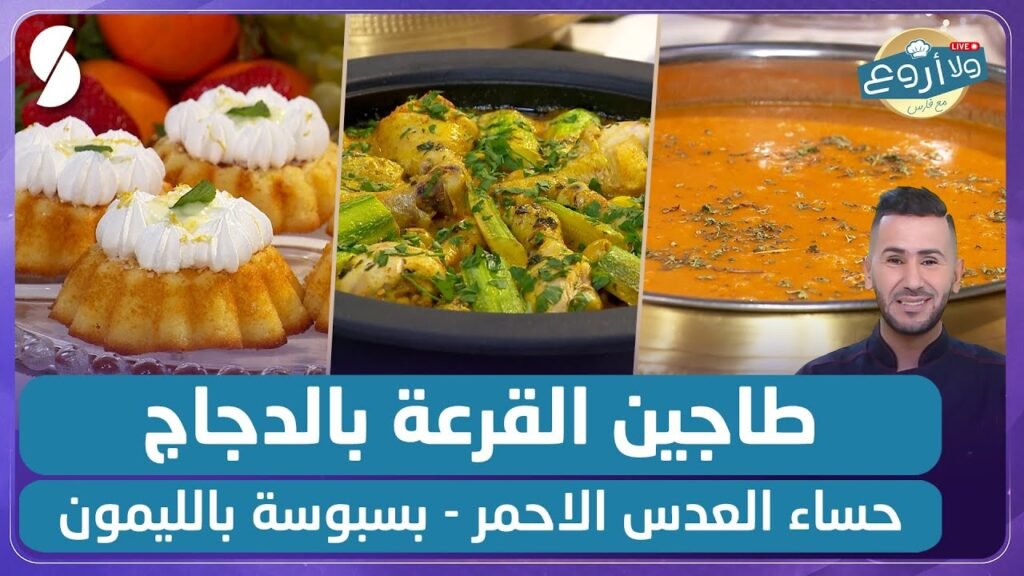طاجين القرعة بالدجاج و حساء العدس مع بسبوسة بالليمون – ولا أروع مع الشاف فارس