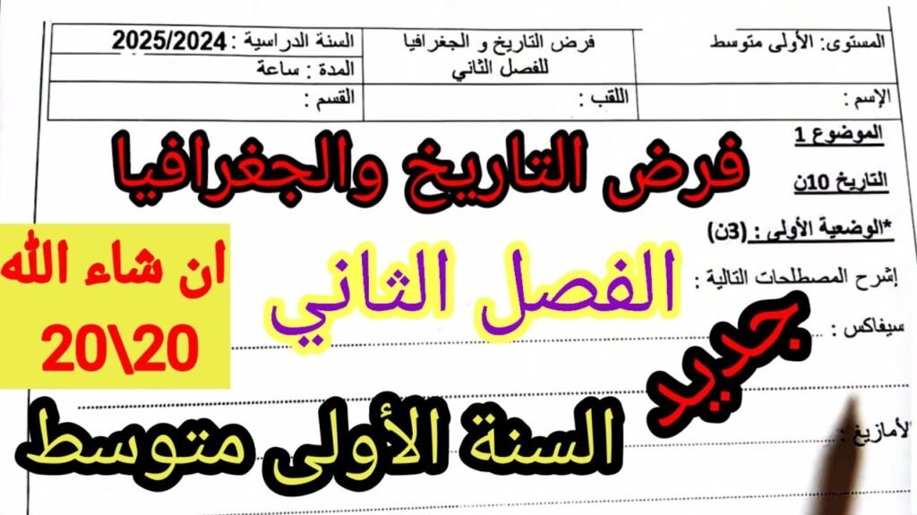 فرض الفصل الثاني في مادة التاريخ والجغرافيا للسنة الأولى متوسط فرض الفصل الثاني في مادة التاريخ والجغرافيا السنة الاولى … source