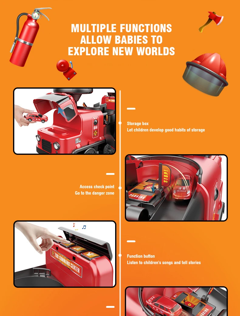 Lumières fraîches, effets sonores simulés, conception de stockage, glissement et équitation, forte capacité portante.